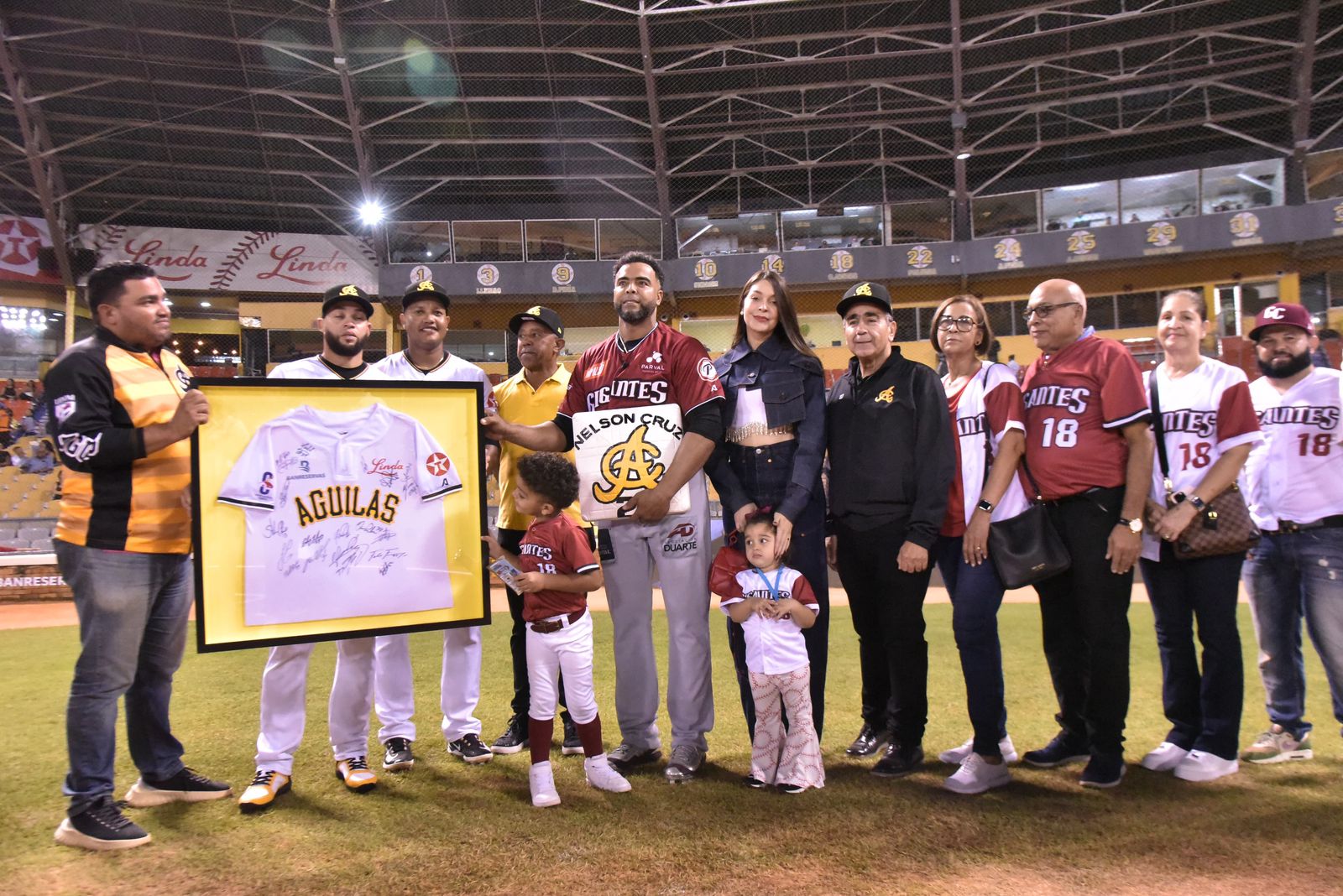Allí estuvieron Nelson Cruz Senio, el padre, su compañera e hijos, así como Winston ”Chilote” Llenas, Luis Ermuc, Frank Valdez y el manager de las Águilas, José Leger.