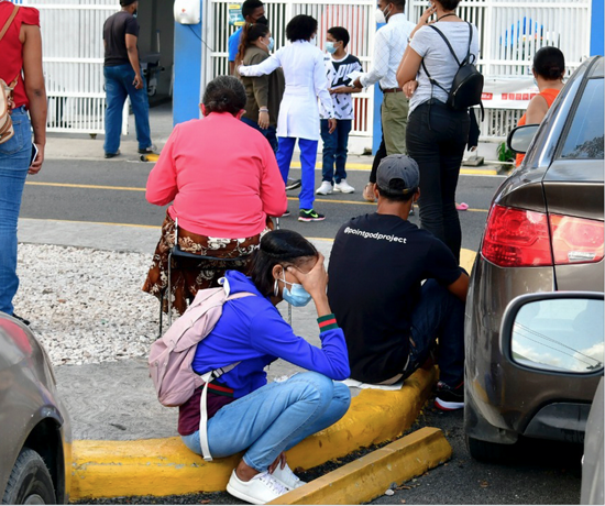 En los hospita­les públicos de Santo Do­mingo y San­tiago conti­núa una gran afluencia de personas buscando aten­ción para Covid-19, pero los riesgos y el tiempo de hospitalización son meno­res que en otras ocasiones.