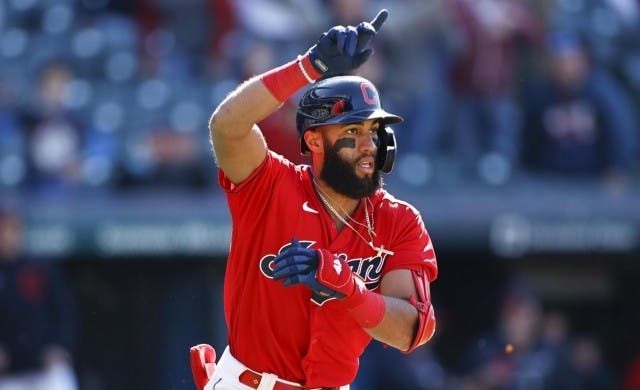 CLEVELAND.- Cuando Amed Rosario rodeó las bases después de su jonrón en la tercera entrada, su segundo hit del día, todo el dugout gritaba «tres».