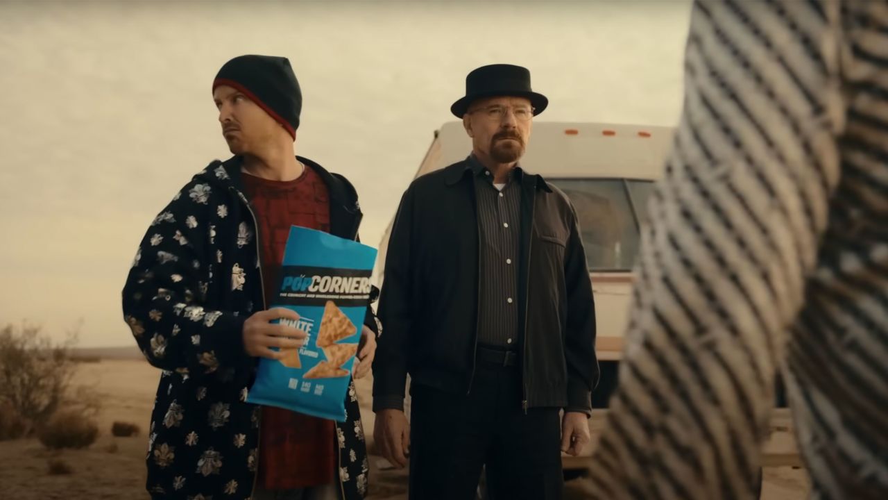 Las estrellas de «Breaking Bad» Aaron Paul y Bryan Cranston se reunieron en un anuncio de PopCorners. (PopCorners)