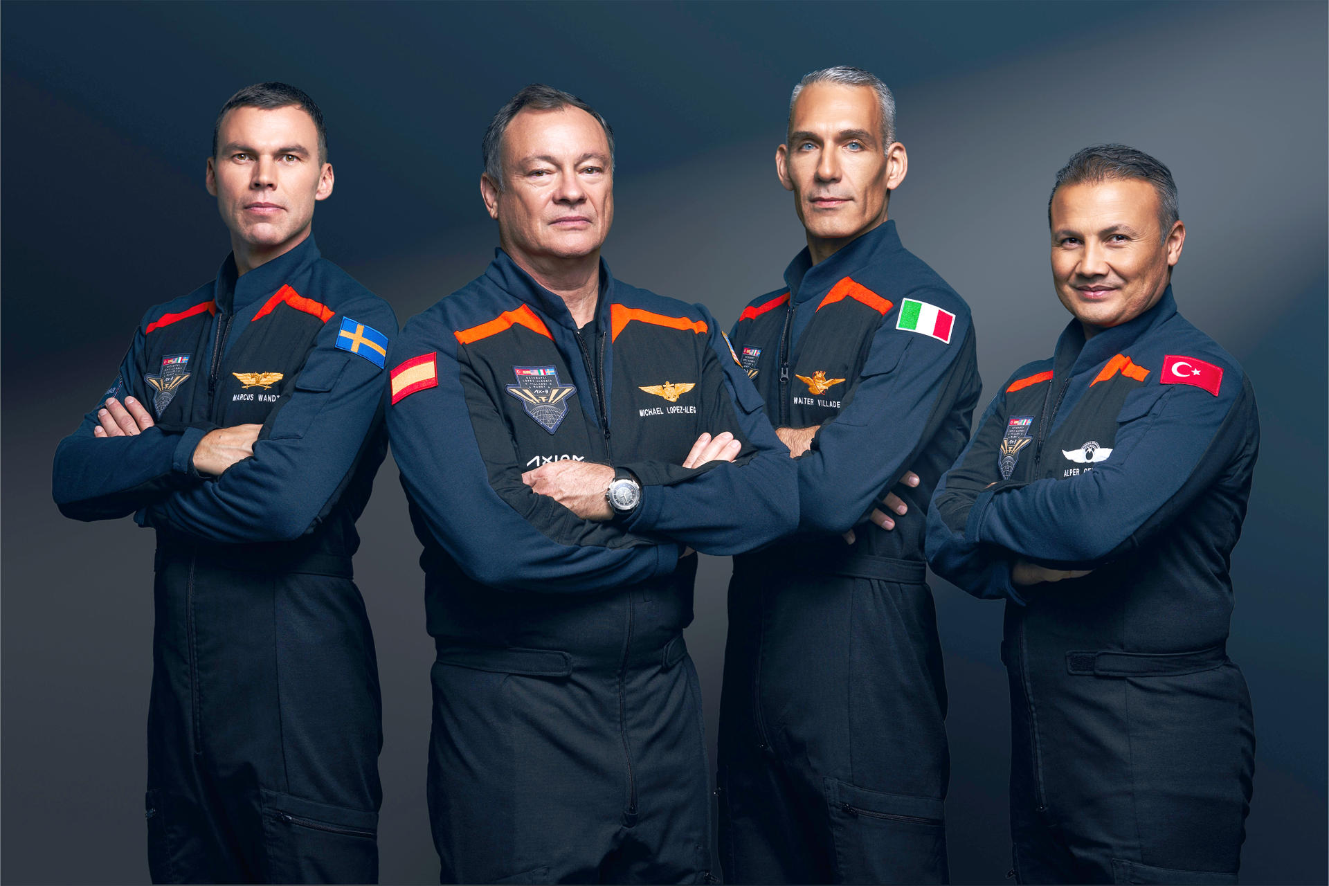 Viajarán con Alegría, el piloto italiano Walter Villadei y dos especialistas de misión: el turco Alper Gezeravci -el primer nacional de ese país que vuele al espacio- y el sueco Marcus Wandt.