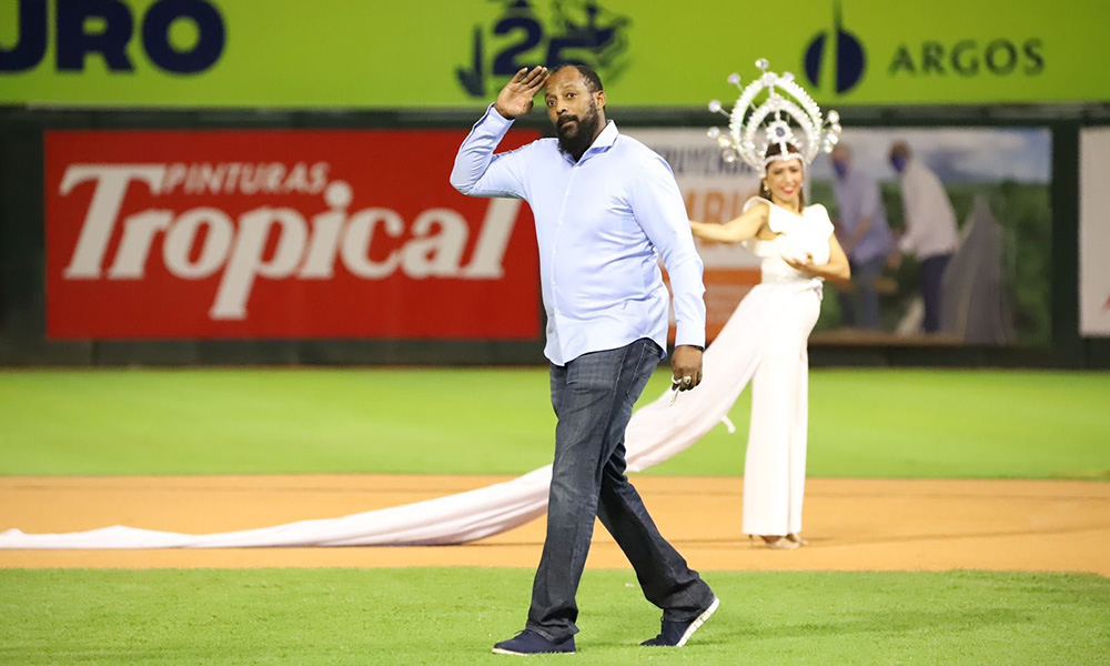 Pasada las 7:30 de la noche, las modernas luces instaladas en todo el entorno del viejo parque de béisbol, ubicado en el ensanche La Fe, se apagaron para dar inicio al acto inaugural, que inició con la salida del inmortal de Cooperstown, Vladimir Guerrero, mientras se interpretaba una canción en homenaje a su persona.