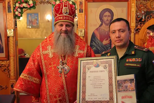 Asanbekovich fue condecorado por su servicio en esa acción por el viceministro de Defensa ruso Dmitry Bulgakov. También fue bendecido por el obispo de Khabarovsk en noviembre de 2021, poco antes de su despliegue en Ucrania.