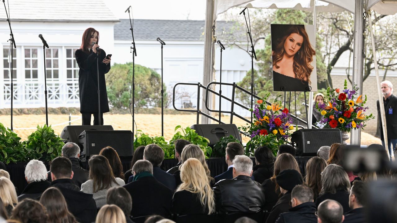 Priscilla Presley, la madre de Lisa Marie Presley, leyó brevemente y en voz baja un poema de una de sus nietas.