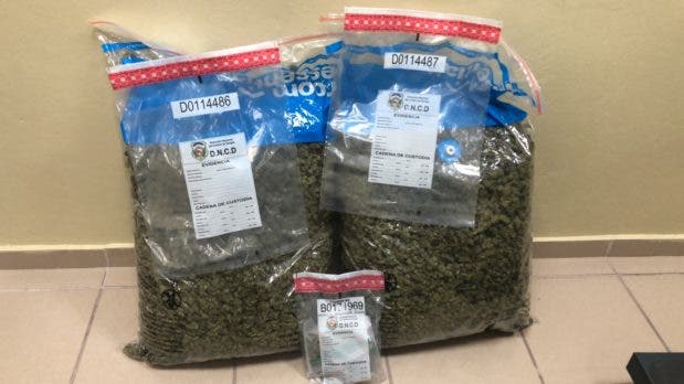 En presencia de un fiscal, se procedió abrir la maleta, encontrando en su interior dos fardos y una porción, presumiblemente de marihuana, con un peso aproximado de 33.03 libras.