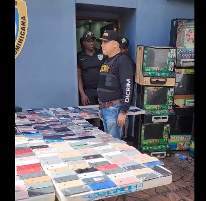La Policía Nacional informó que agentes policiales adscritos a la Dirección Central de Investigaciones Criminales (DICRIM) junto a fiscales, intervinieron 20 puntos de drogas en La 42 de Capotillo, Distrito Nacional, ocupando más de 100 celulares, sustancias controladas, máquinas tragamonedas, prendas y otras evidencias.