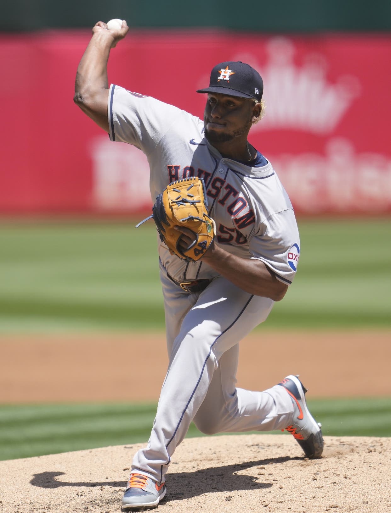 OAKLAND, California .AP. El dominicano Ronel Blanco contuvo a Oakland en blanco por siete episodios en su regreso de una suspensión y Kyle Tucker bateó jonrón de dos carreras para liderar a los Astros de Houston a una victoria por 5-2 sobre los Atléticos ayer domingo.