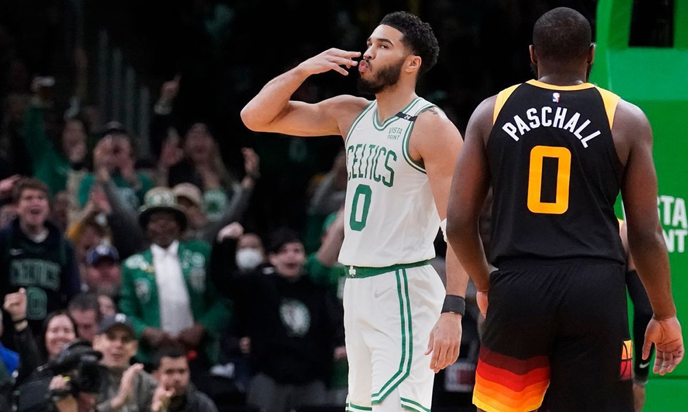 Jayson Tatum consiguió 11 de sus 26 puntos durante un primer cuarto casi perfecto de Boston, y los Celtics superaron anoche 125-97 al Utah Jazz.