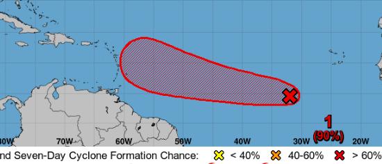 El Centro Nacional de Huracanes elevó a un 90% las probabilidades para que la depresión tropical Bret se convierta en un ciclón tropical en los próximos 7 días.
