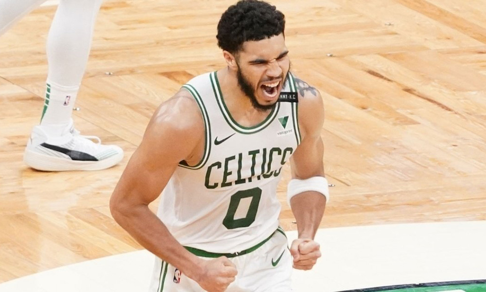Tatum atinó nueve triples y 18 de 28 disparos de campo. Llegó al descanso con 31 tantos y arribó a la media centena al atacar la cesta con unos 4:30 minutos por disputar.