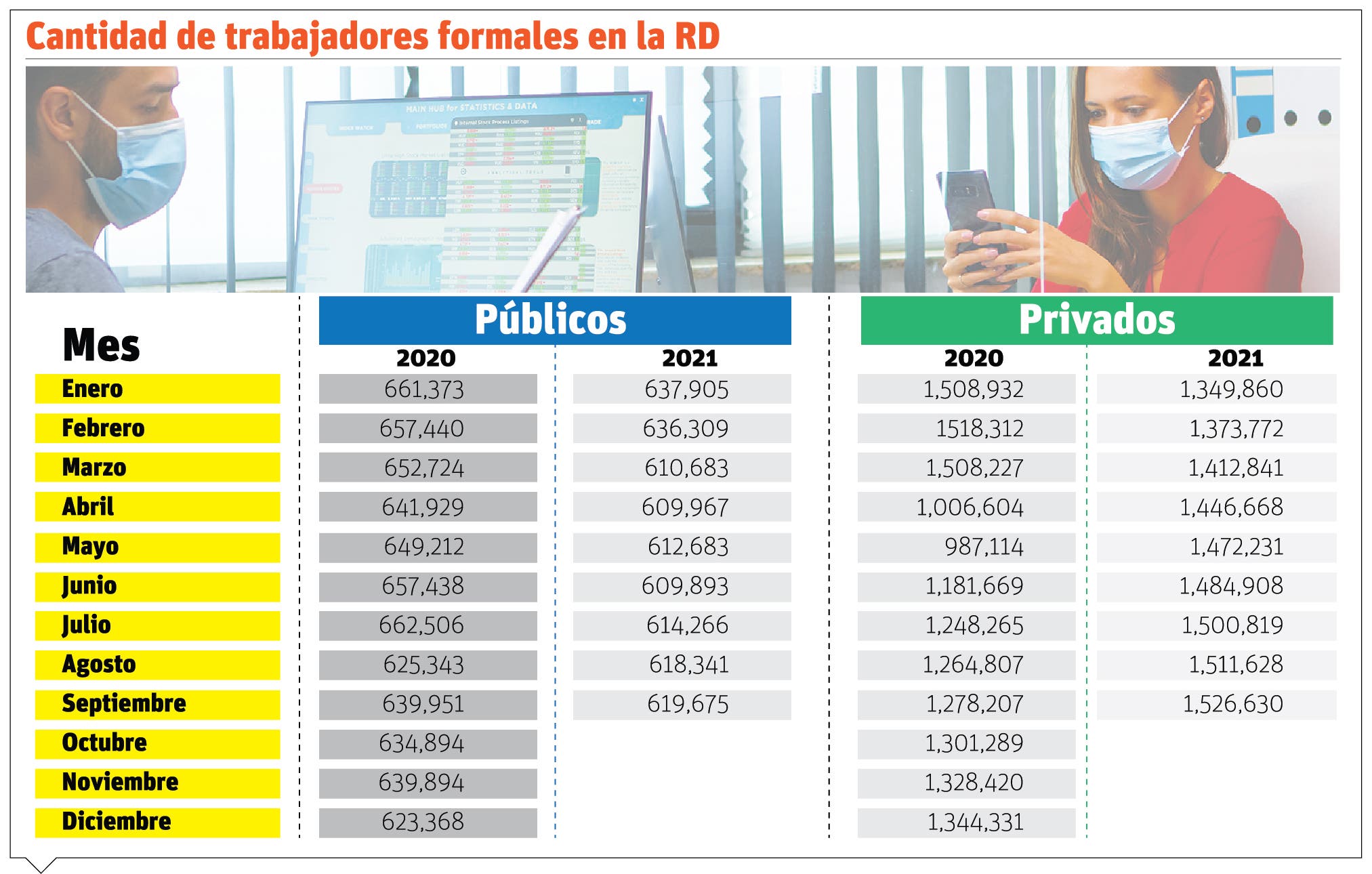 SANTO DOMINGO.-El presidente de la República, Luis Abinader, anunció que para el mes de septiembre la cifra de empleos formales superó la registrada en febrero de 2020, justo antes del impacto de la pandemia del Covid-19.