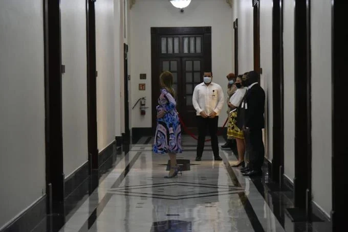 Evitaron conversar con la prensa y abandonaron la casa de gobierno utilizando la escalinata ubicada en el pasillo contiguo al despacho del presidente Luis Abinader.