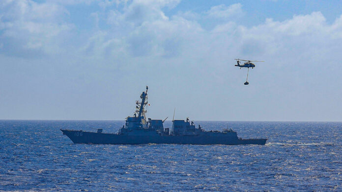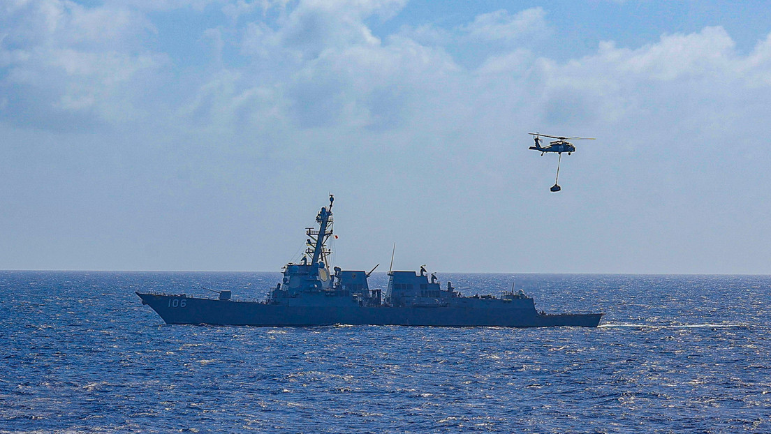 Según dos personas consultadas por Reuters, la grabación muestra el humo despejándose y a dos hombres, aferrándose a una sección cortada de la proa de la embarcación. Iban sin camisa, desarmados y sin equipo de comunicaciones visible.