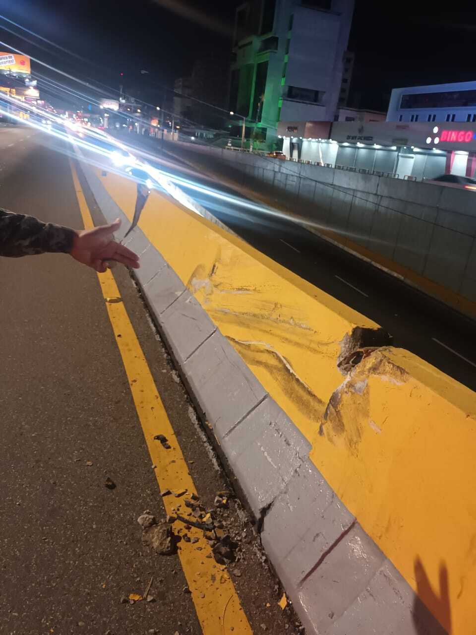 Un vehículo impactó parte del muro New Jersey del paso a desnivel de la avenida 27 de Febrero casi esquina Tiradentes, en sentido oeste-este, hecho que ocurrió la madrugada de este sábado.