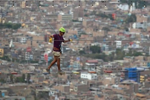 Tablas de colores forman un puente colgante en lo alto de un cerro desde el que se divisan miles de casas que forman el inmenso distrito limeño de San Juan de Lurigancho. Por él desfilan atrevidos turistas para conseguir su foto viral y, sin saberlo, contribuyen a mejorar la calidad de vida de sus vecinos.