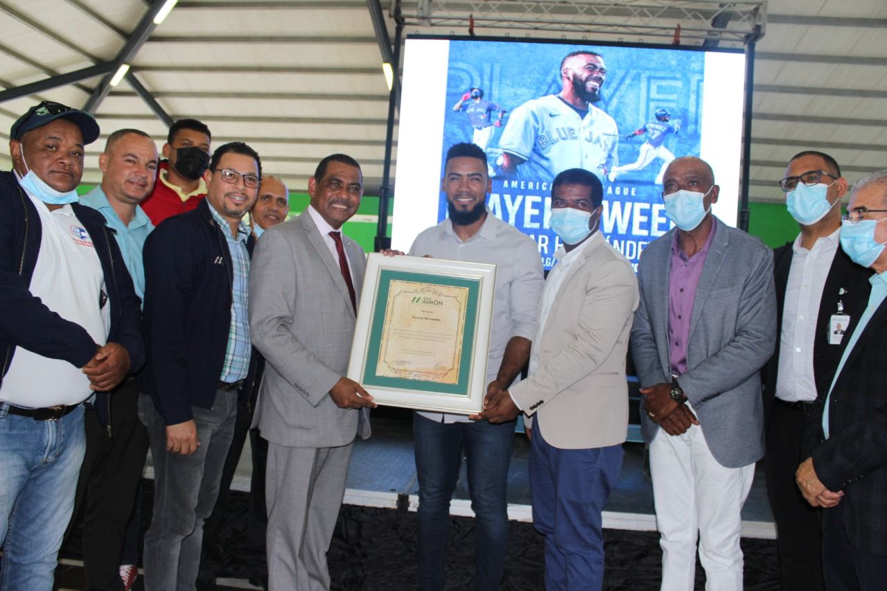 “Los números que nuestro Teoscar Hernández ha puesto en la gran carpa, han colocado al municipio de Maimón a brillar, porque donde quiera que se presenta el ha dicho, yo soy de Maimón y es un orgullo para este Municipio” dijo Ramón Antonio Díaz, previo a entregar el reconocimiento al jardinero de los Azulejos de Toronto.