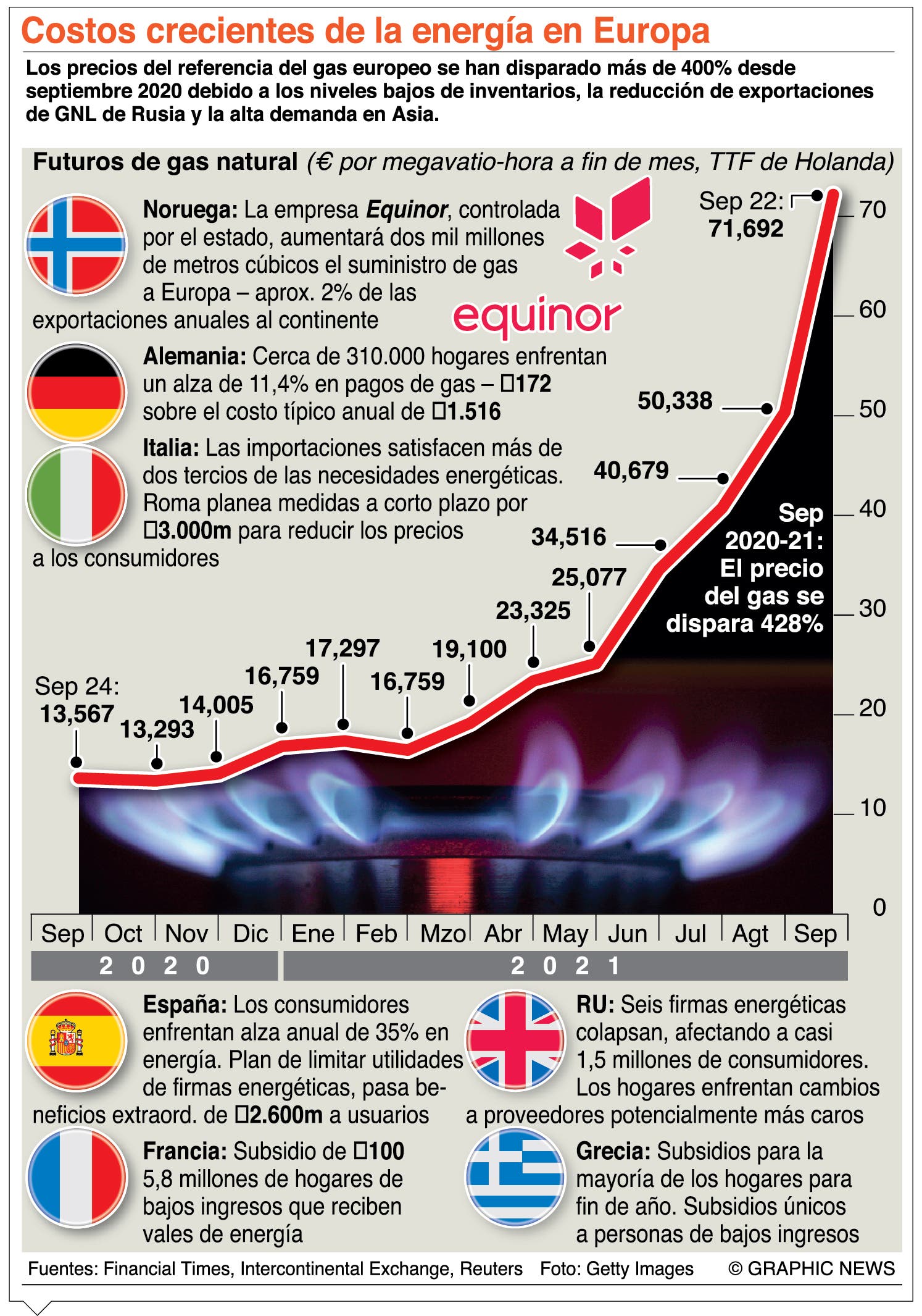 Londres.-El incremento global del precio del gas ha provocado una crisis especialmente profunda en el mercado del Reino Unido, donde las eléctricas no pueden trasladar a los consumidores toda la subida de los precios mayoristas y decenas de compañías afrontan la amenaza de una quiebra este invierno.