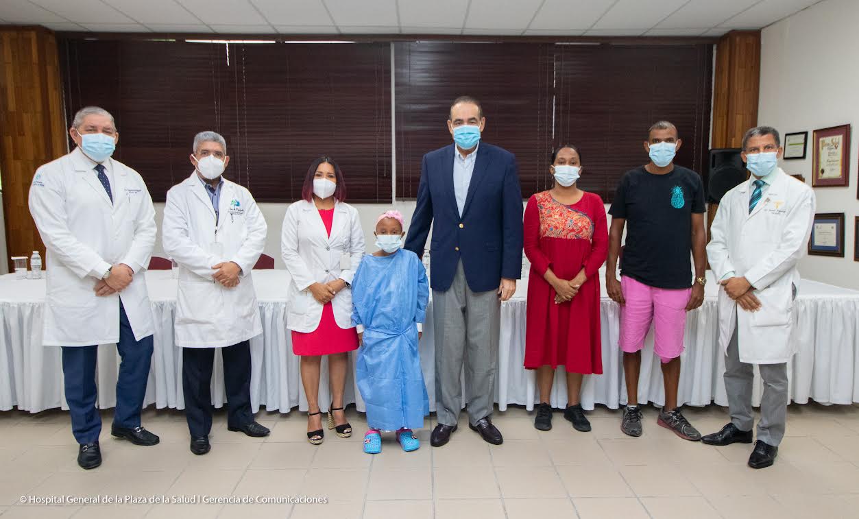 El equipo médico del Hospital General de la Plaza de la Salud (HGPS), dio de alta a la paciente Raquel Manzueta de 8 años de edad, luego de haber recibido el primer trasplante hepático pediátrico vivo a vivo en el país.