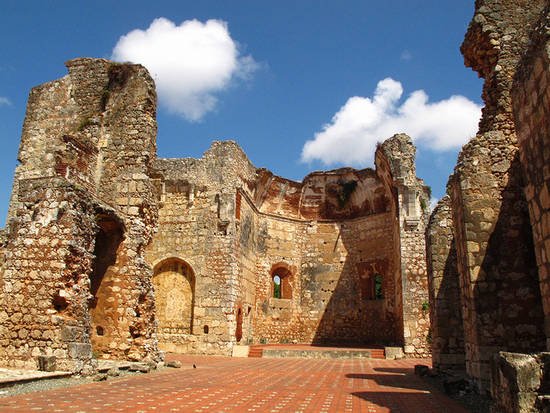imagen: ruinas del monasterio San Francisco, a cuyas puertas se encontraba la tumba de Alonso de Ojeda cuyos restos fueron robados por el presidente Rómulo Betancourt y su delegación a la asunción del presidente Juan Bosch en 1962 y por autorización ilegal de este.