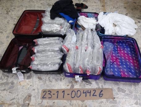 Las autoridades detuvieron a dos jóvenes de 21 y 24 años, en la terminal de Punta Cana, a quienes ocuparon cuatro maletas, en cuyo interior tenían distribuidos 38 paquetes de marihuana, así como varios sobres de golosinas, con decenas de gomas de mascar, hechas a base de cannabis.