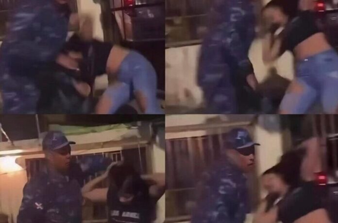 En uno de los videos que circuló en las redes sociales se observa al agente halar por el pelo y violentamente a una joven hasta tumbarla en el suelo. Antes de esa acción, el hombre la golpea con la mano, mientras la joven trata de escapar. (LD-rcb / OJO)