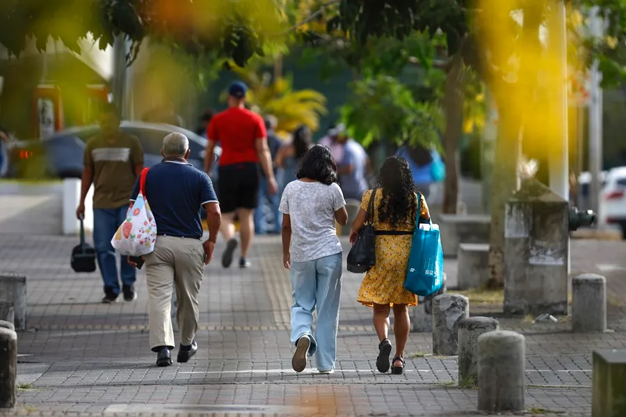 Una mujer camina el 6 de marzo de 2025 por la avenida Vía España en Ciudad de Panamá (Panamá). EFE/Bienvenido Velasco