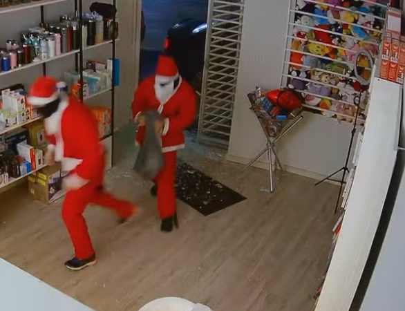 Dos delincuentes disfrazados de Papá Noel, con gorros y máscaras, ingresaron a una tienda de electrónicos ubicada en el centro de Cláudio, en la región Centro-Oeste de Minas Gerais, Brasil, y sustrajeron 32 teléfonos móviles, un altavoz y un videojuego.