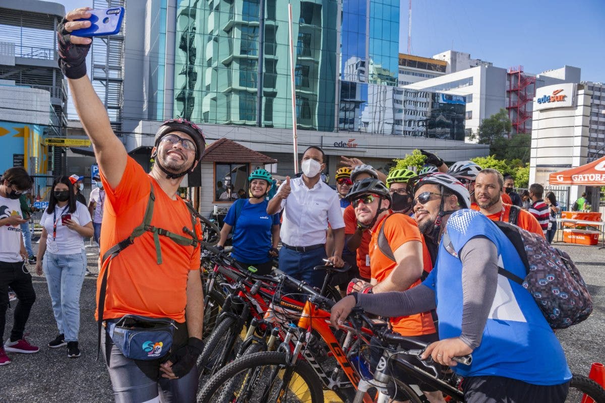 Como parte de la celebración del Día Mundial Sin Carro, los empleados de Edesur dejaron en sus casas sus carros y utilizaron bicicletas y patinetas eléctricas para llegar a la empresa. Algunos llegaron caminando, entre ellos Milton Morrison, y la colaboradora Victoria Durán, que se movilizó a pie desde el puente Francisco del Rosario Sánchez, mejor conocido como La 17, hasta la sede de Edesur en la avenida Tiradentes.