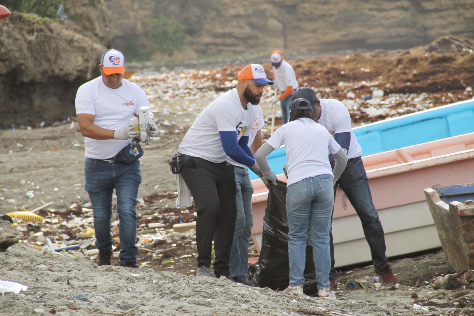 Santo Domingo, D.N.- La empresa Edesur Dominicana a través del área de Responsabilidad Social Corporativa y como parte de sus acciones de sostenibilidad, se sumó a la jornada de limpieza de playa que realizan diversas instituciones, recolectando más de mil libras de residuos.