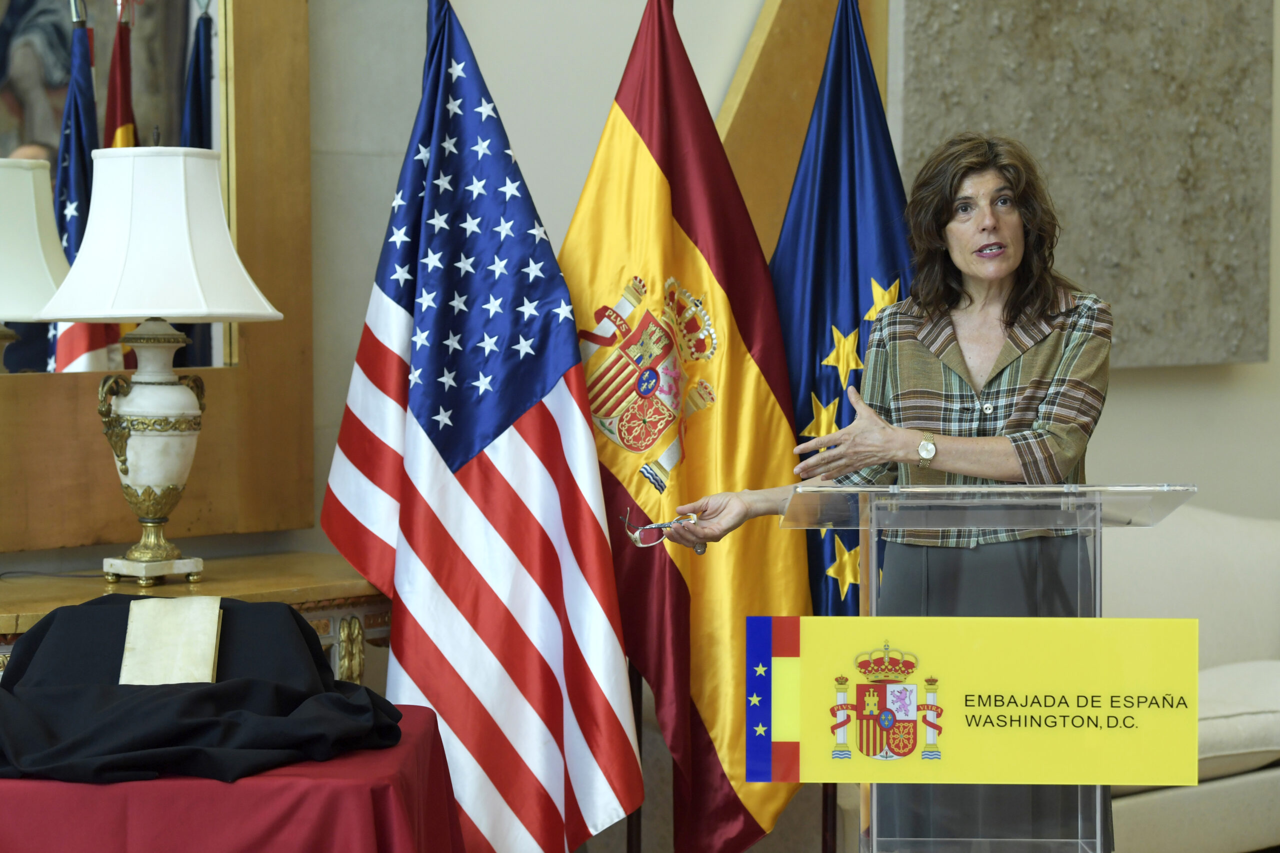 «Hoy importa más el simbolismo que el valor real del libro. Nos alegra acoger este gran momento de cooperación», manifestó Moreno Bau, primera mujer al frente de la embajada española en Washington.