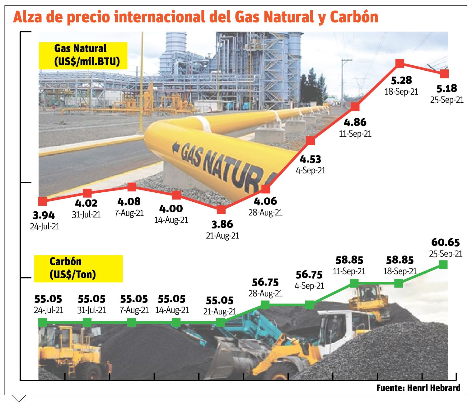 El gas natural, que representa el 31 % de la matriz energética de la República Dominicana, ha subido a nivel mundial un 153.7 % este año al pasar de 2.04 a 5.18 dólares el millón de BTU entre septiembre de 2020 y el mismo mes de este año, y se proyecta que seguirá aumentando hasta que pase el invierno.
