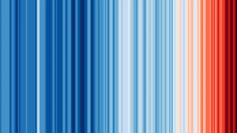 Aunque parezca simple, este diseño de rayas de colores que ves arriba revolucionó la forma en que visualizamos y comunicamos el cambio climático.