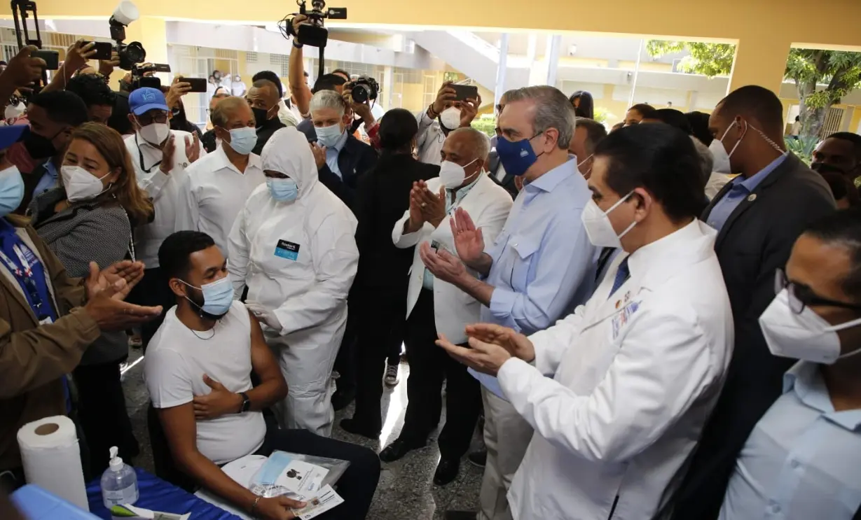 “Estamos aquí en Santiago de los Caballeros, en un relanzamiento, de apoyo al proceso de vacunación en la República Dominicana”, dijo el jefe de Estado, que encabezó el acto en el Instituto Tecnológico México acompañado de los ministros de Educación, Roberto Fulcar; de Salud Pública, Daniel Rivera, y el administrativo de la presidencia, José Ignacio Paliza.