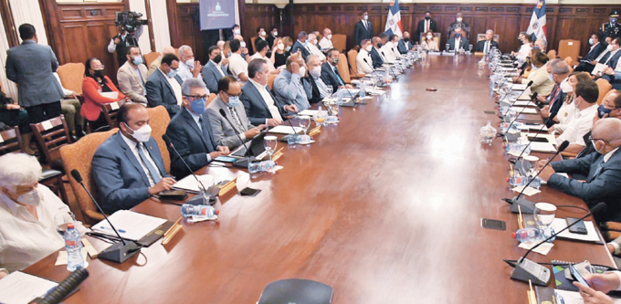 La reunión se extendió por más de dos horas y tuvo lugar en el Salón de Consejo del Palacio Nacional, donde participaron ministros, directores y administradores del gobierno.