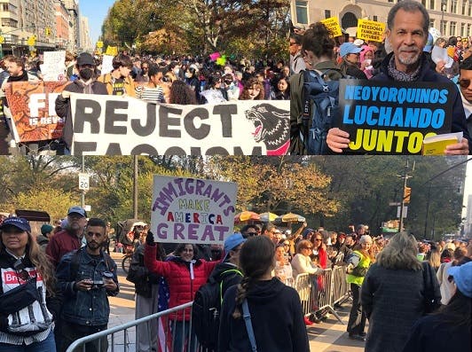 La organización Make the Road NY, junto a más de 24 organizaciones civiles, realizó una protesta el pasado fin de semana en el Columbus Circle de Manhattan, con la asistencia de miles de neoyorkinos, entre ellos cientos de dominicanos, en contra lo que califican tiempos de políticas racistas, transfóbicas, misóginas y xenofóbicas”.