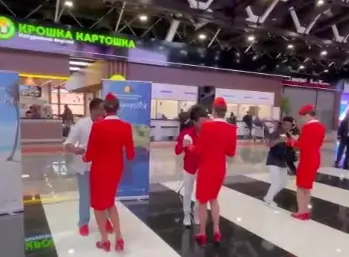 Mujeres en el aeropuerto de Sheremetevo, Moscú, capital rusa, bailaron a ritmo de bachata uno de los temas de Juan Luis Guerra para celebrar la salida del primer vuelo de Aeroflot desde ese país hacia Punta Cana, en la República Dominicana.