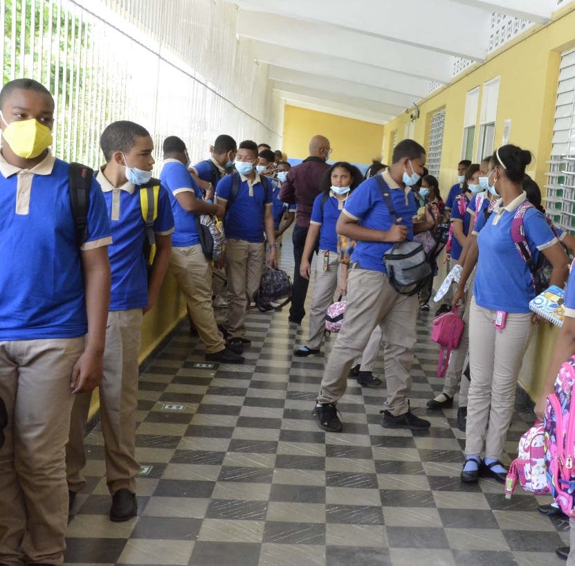 Benecia Muñoz Paulino, directora del plantel, dijo que aplican una dinámica en la que impere la alegría y están orientando a los estudiantes para el uso correcto de mascarillas y el distanciamiento. La Escuela Eulalio Arias, de Cristo Rey, por igual dividió la población estudiantil.
