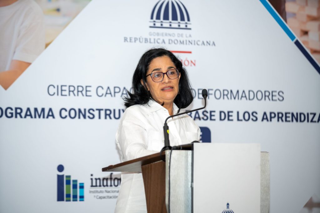 “En el día de hoy, celebramos que 500 técnicos regionales y distritales han concluido con una etapa intensiva de formación continua donde se han especializado en lectura, escritura y matemática para los primeros grados, con el fin de que puedan continuar formando a los docentes y equipos de gestión, dándoles el acompañamiento para transformar la práctica pedagógica”, manifestó Ancell Scheker, viceministra de Asuntos Técnicos y Pedagógicos del MINERD.