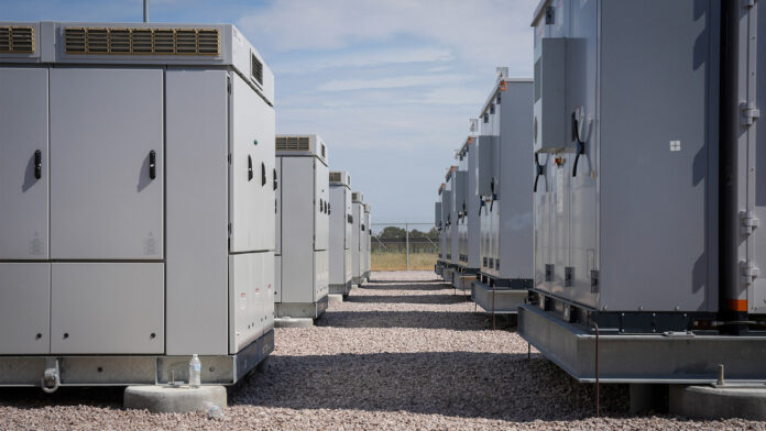 IMAGEN: Depósito de almacenamiento de baterías en una planta solar en Iola (Texas, EE.UU.), el 12 de septiembre de 2023.Jon Shapley / Houston Chronicle / Gettyimages.ru