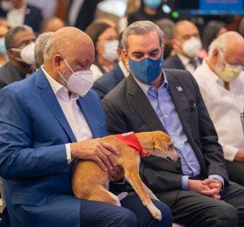 En franca muestra de afecto hacia su mascota se pudo apreciar al ministro de Industria y Comercio, Víctor Ito Bisonó.