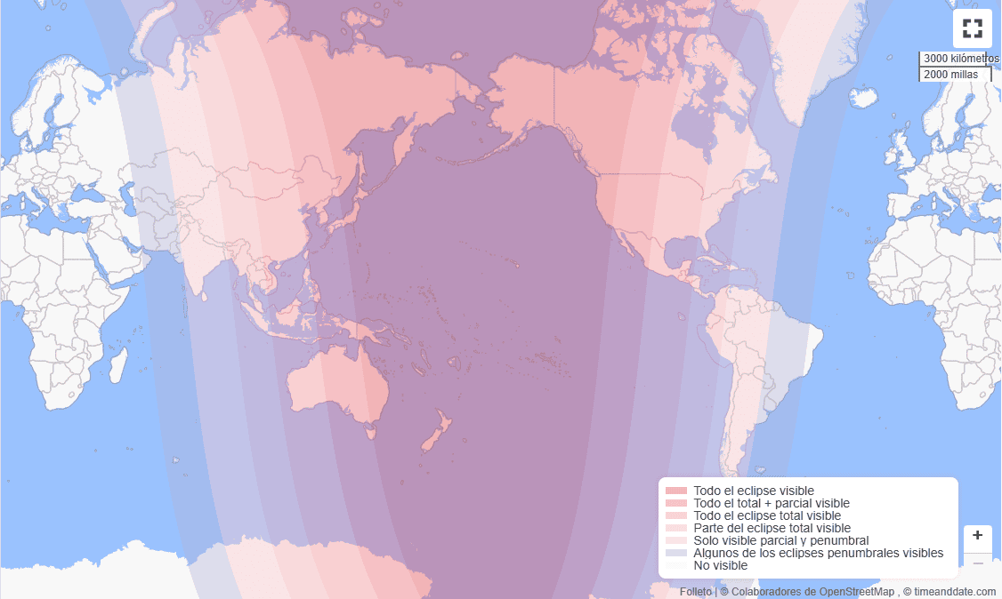 A las 5:50 a. m. iniciará la fase parcial, momento en que la umbra, la parte más oscura de la sombra terrestre comenzará a cubrir visiblemente el disco lunar.