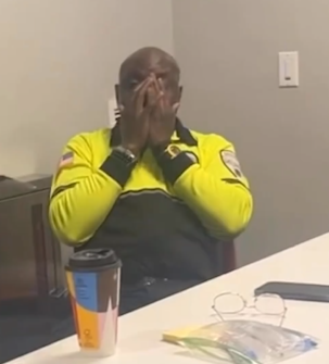 El guardia no pudo contener su emoción cuando un joven le contó lo agradecidos que estaban todos con él y cómo reunieron el dinero.