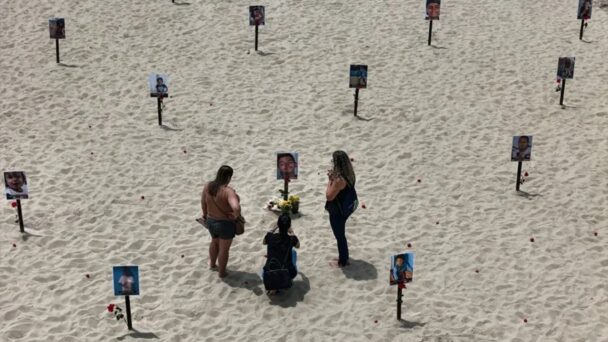 Exponen fotos en una playa de 48 niños muertos en tiroteos para denunciar la violencia en Río de Janeiro
