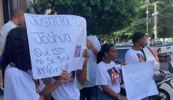 Con pancartas en mano exigiendo justicia, familiares y amigos de Joshua Omar Fernández acudieron este viernes a las inmediaciones del Palacio de Justicia de Ciudad Nueva, donde conocerán la solicitud de medida de coerción a Wesly Vincent Carmona (El Dotolcito) y los demás implicados en la muerte del joven durante un atraco el pasado 16 de abril.