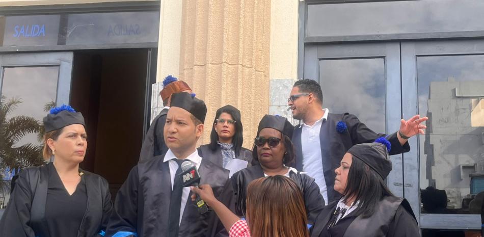 Fiscales con toga y birrete, a la entrada del Palacio de Justicia de Ciudad Nueva, lanzaron una proclama por la dignificación de las funciones y jubilaciones digna de los miembros del ministerio público.