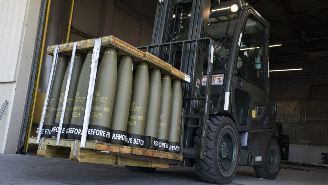 • Imagen ilustrativa. Piezas de artillería destinadas a Ucrania en la base de la Fuerza Aérea Dover, Delaware, EE.UU.Alex Brandon / AP