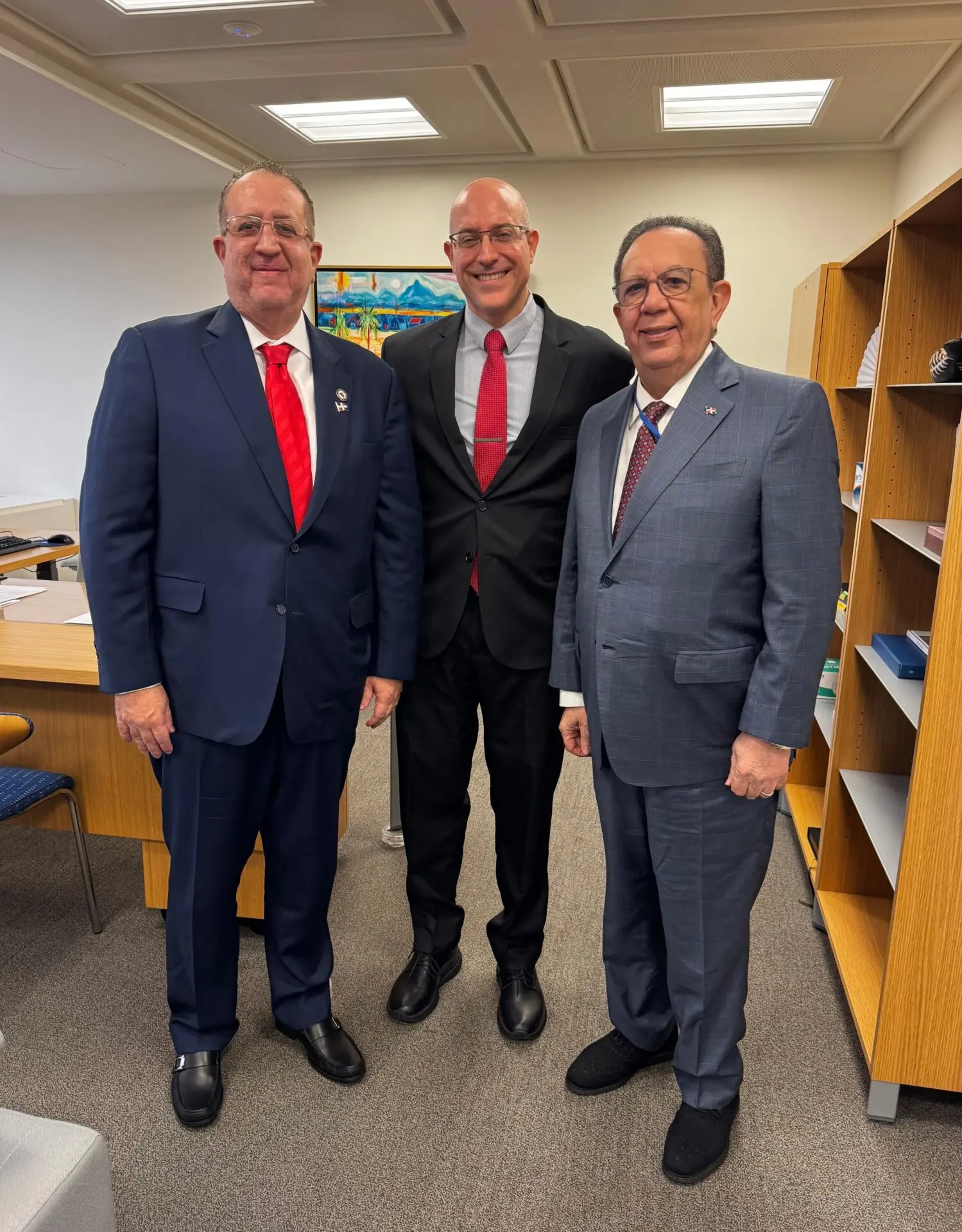 El gobernador del Banco Central de la República Dominicana, Héctor Valdez Albizu, y el ministro de Hacienda y Economía (MHE), Magín Díaz, sostuvieron un encuentro bilateral con el señor André Roncaglia, director ejecutivo del Fondo Monetario Internacional (FMI) por Brasil y presidente de la constituyente de países a la cual pertenece la República Dominicana, en el marco del inicio de las Reuniones Anuales del FMI y del Banco Mundial de 2025.