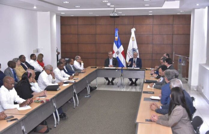 El presidente de la República, Luis Abinader Corona, encabezó esta tarde una rueda de prensa del Comité Nacional de Salarios (CNS) en la que se anunció un aumento de un 19 % al salario mínimo para los empleados privados no sectorizados.