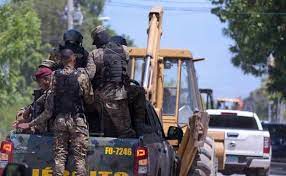 En el lugar, hay varias retro palas, palas mecánicas y otros equipos, los cuales son custodiados por soldados del Ejército (ERD).