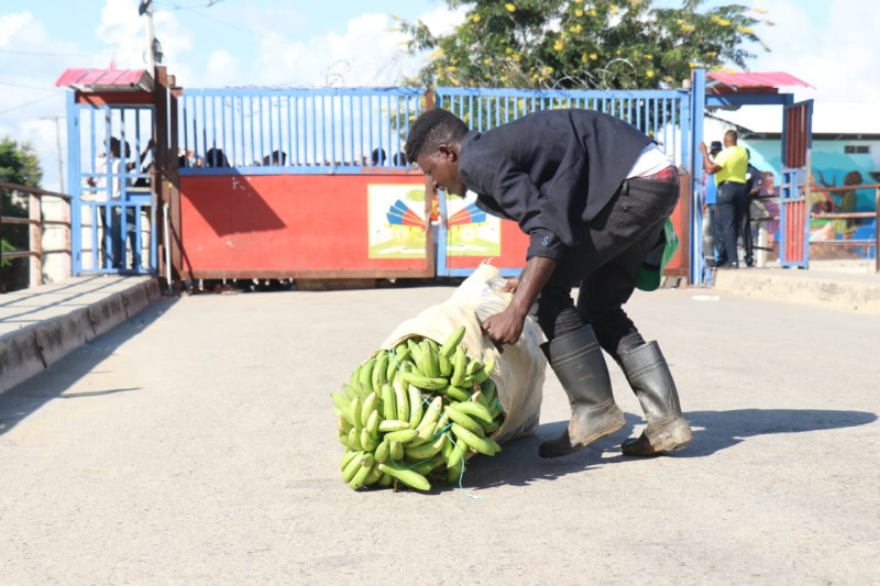 El cruce de las mercancías hacia Haití por el puente ocurre por una puerta pequeña que mantienen las autoridades abiertas para permitir el acceso de haitianos que se encuentran en la provincia de Dajabón y que quieran retornar a su país, flexibilidad que aprovechan para entrar con alimentos. [OJO-LD-gr]